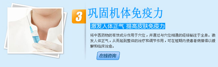 三巩固:利用免疫调节系统内调脏腑,外疗肌肤,在修复皮肤组织细胞的同时形成保护膜,激活皮肤细胞组织的新生,使皮肤表层及深层受损组织恢复正常结构,血运恢复正常,并深度提高病区皮肤的抵抗力,从而改变过敏体质,保持机体自然生理机能动态平衡,恢复机体正常的免疫功能,避免长时间口服药及外用药膏所导致的毒副作用,解决长期存在的复发难题,真正达到了标本兼治。
