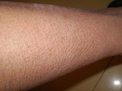 第三,棘层细胞变薄,基底层色素增加。由于角化过度伸入毛囊形成毛囊角栓。汗腺皮质腺可萎缩。真皮无明显改变,或在血管周围有少数淋巴细胞浸润。这些都是鱼鳞病的症状。