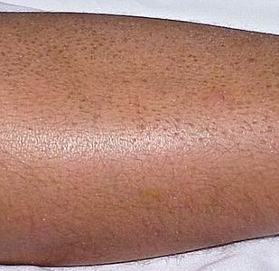 患者主诉:王先生自述,父亲就是个蛇皮癣患者。本来小时候还庆幸自己没有被遗传这种顽症,但让人意向不到的是,生完孩子不就,鳞屑骚痒等症状,不断出现了。在交谈中,王女士卷起裤腿,记者看到一片片鱼鳞状的皮肤附在腿上,十分干燥且全部发黑。王先生28岁时,开始发病。10年来,几经治疗,药物、偏方都用过,病情反复不愈。