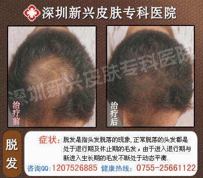 男性偏食,喜欢吃肉,对蔬菜的摄入较少。因偏食等因素引起的营养不均衡,会造成机体吸收障碍,头发正常的生长过程被抑制,提前进入休止期,并出现脱发的现象。那么,头顶掉头发要怎么治疗呢?我们来听听深圳新兴皮肤病专科医院专家是怎么说的吧。》》》有脱发小疑问,点击咨询专家