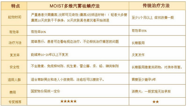MOIST多维汽雾祛鳞疗法与传统疗法优劣势对比: