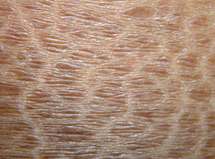 晴女士 66岁 自述鱼鳞病多年,近来脱屑严重,前来求诊。临床观察,四肢皮肤干燥、粗糙,皮肤表面见淡褐色鱼鳞样固着性鳞屑,以伸侧为重,并累及双脚皮肤。干燥、无光泽,内侧白屑增多,脱落。经我院使用"MOIST多维汽雾祛鳞疗法"进行治疗,并结合全身中药浴,中药汽疗,LED红光、局部外用药治疗后封包,促进药物吸收综合治疗。收到了明显治疗效果。患者精神食纳好,四肢皮损消退,伴有少量的脱屑,皮损尚呈淡褐色,表面光滑,细腻。