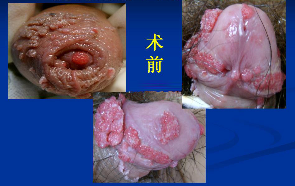 2、条索状疣体,较多见于男性包皮环切术后,沿包皮创面如麻绳捆满冠状沟一样,系带部位亦有。
