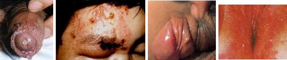 生殖器疱疹感染潜伏期约为3~5天,患部先有烧灼感,出现红斑,很快在红斑的表面发生3~10个成簇分布的小水疱,数日后成为小脓疱,破溃后形成糜烂面和浅溃疡,局部红肿,有烧灼样疼痛。多发生于龟头、冠状沟、尿道口或阴茎体,可并发尿道炎。