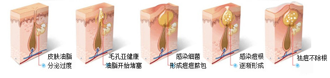 新兴专家方梅君主任指出:长青春痘直接的因素就是毛孔堵塞,毛孔堵塞后,毛囊里的油脂排不出来,越积越多就形成一个个小痘痘。所以影响长痘的根本原因就是皮肤毛孔的健康程度,是否能顺畅的排除这些油脂、毒素及分泌物。